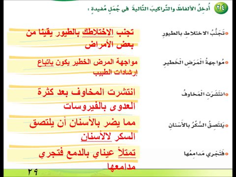 اضع الالفاظ والتراكيب التالية في جمل مفيدة المصدر