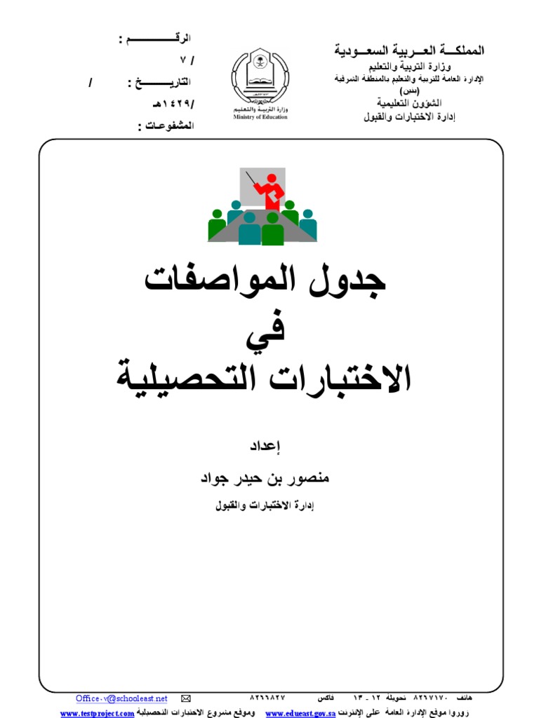 جدول المواصفات وزارة التربية والتعليم