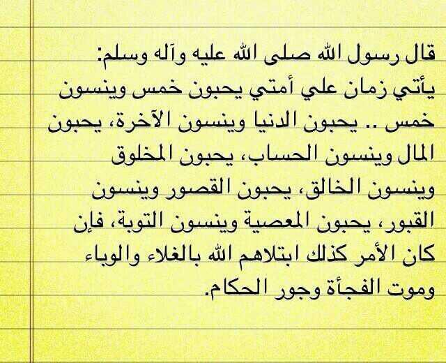 ياتي زمان على امتي يحبون خمس ويكرهون خمس