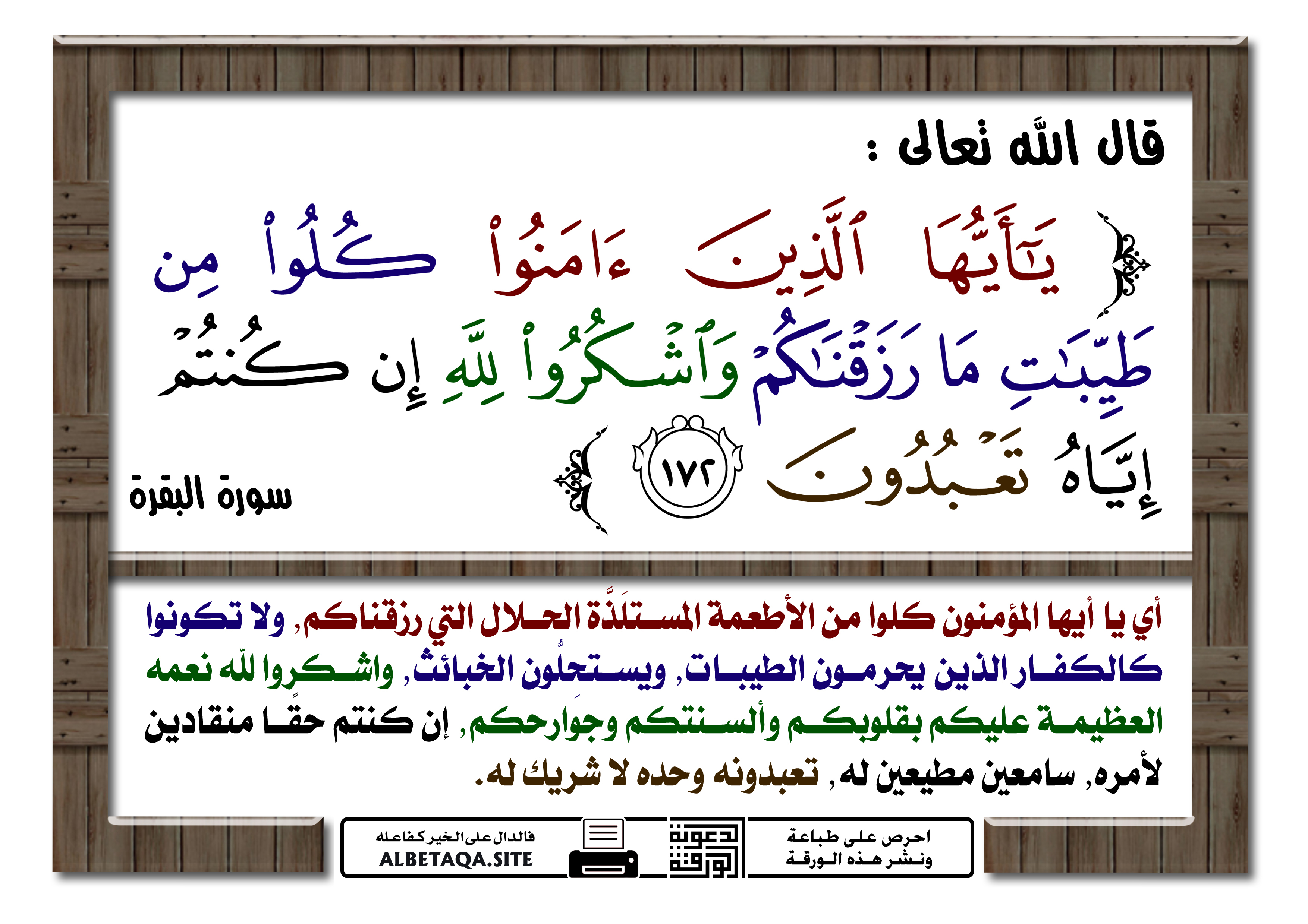 كلوا من طيبات ما رزقناكم موقع البطاقة الدعوي